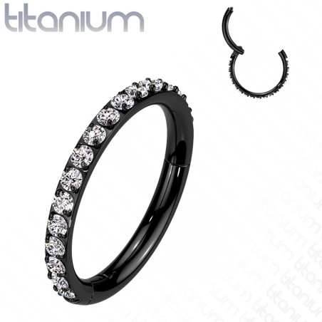 Anneau de piercing en titane strass 1.2mm noir