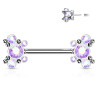 Piercing pour téton avec fixation interne par une barre et bijoux en acier chirurgical forme papillon serti de cristaux disponible en 4 couleurs