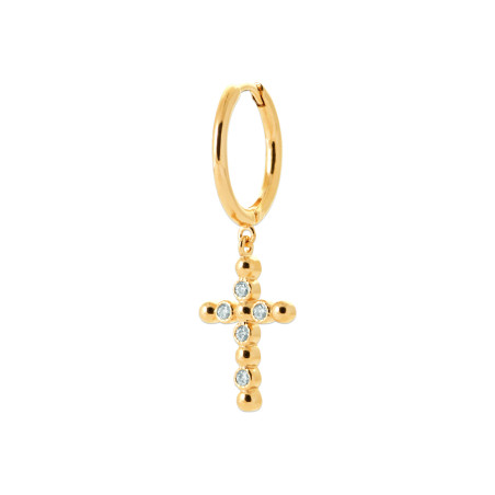 Cette créole en plaqué or 18 carats de 10 mm se distingue par son pendentif croix délicatement orné de zircons. Un design à la fois moderne et intemporel, qui s’accorde aussi bien avec une tenue décontractée qu’avec un look plus habillé.