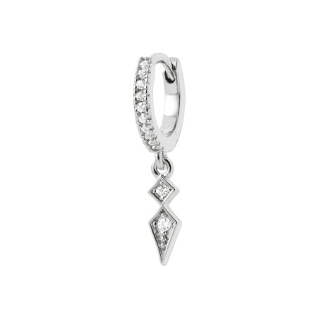 Créole en argent 925 rhodié avec pendant losange serti de zircon — vendue à l’unité