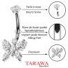 Piercing nombril en titane avec pendentif papillon et cristaux